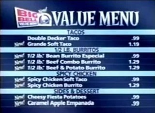 The Taco Bell Big Bell Value Meal circa 2004 via Reddit