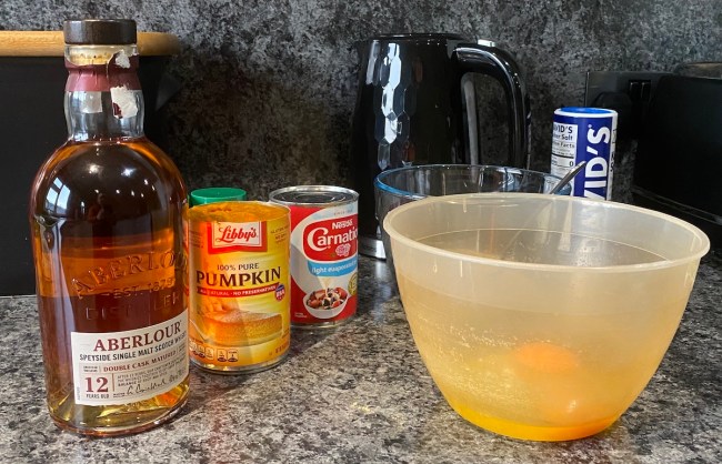 I was concerned I’d encountered a bit of a hitch after discovering I’d be violating the United Kingdom’s customs regulations that ban the shipment of dairy by sending a can of evaporated milk across The Pond. Thankfully, the Aberlour team ensured me he’d be able to track some down and came through with a clutch assist by assembling the rest of the requisite ingredients before shipping the care package Graeme’s way.