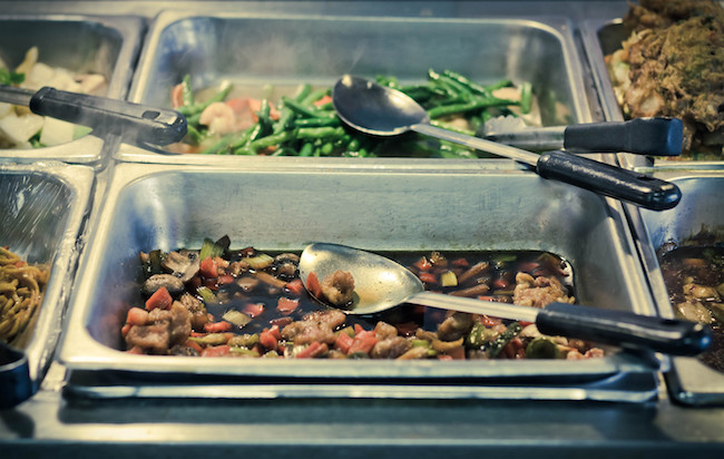 For example, they don’t need a full wait staff because the waiters and waitresses don’t do much except bring drinks and the check. The second, less obvious trick is food placement. Carbs and heavy, dense foods are at the beginning of the buffet line. The sides fill up the plate, and your stomach, leaving little room on your plate or in your gut for the more expensive entree items.