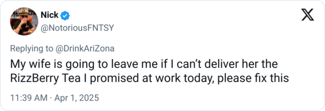 Arizona Iced Tea had the whole internet fooled as an announcement of their new collaboration with “The Rizzler” seems to be a drawn-out April Fool’s joke.