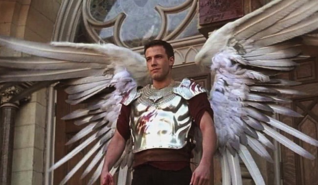 Affleck and Damon play the fallen angels who are banished to Wisconsin but learn of a way to get back to heaven thanks to a church dedication in New Jersey.