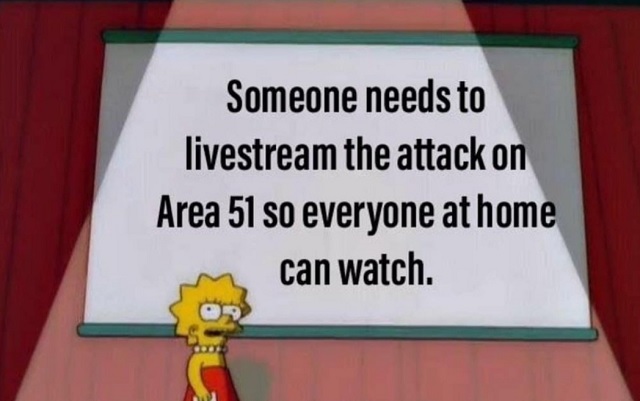 “We will all meet up at the Area 51 Alien Center tourist attraction and coordinate our entry. If we naruto run, we can move faster than their bullets. Lets see them aliens.” https://t.co/X6J2tAQVzk pic.twitter.com/a8jYH76DJK