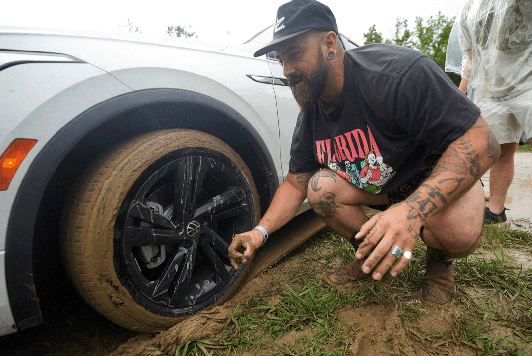 Some concertgoers remain completely stuck in the mud at the campground and its surrounding parking lots with no hope to get out any time soon.