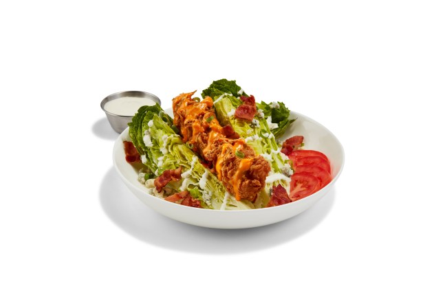 While the quartet featured above will likely be the primary draw for most of the people reading this, I should note they’re not the only newcomers to the Buffalo Wild Wings lineup, as it also recently debuted the Buffalo Wedge Salad. The entree features a massive chicken tender covered in the sauce that lends its name to the dish in addition to bacon, a one-two punch of bleu cheese dressing and crumbles, and these things called “vegetables” (specifically lettuce, tomato, and green onions), which provided me with the chance to tell myself I’m being healthy.