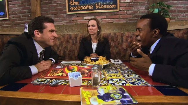 That Chili’s makes a second appearance in the second season as the site of the meeting where Michael and Jan land a contract from the county government after the former flexes his salesman skills by fostering a relationship with the official played by Tim Meadows while largely ignoring the latter’s business advice.