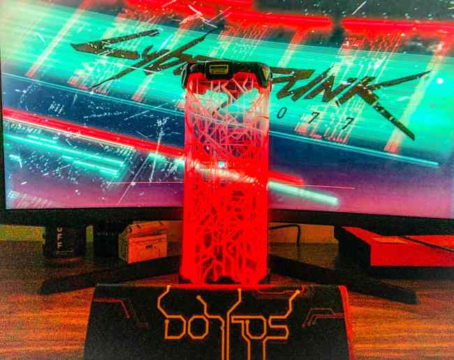 A package I wasn’t expecting showed up on my doorstep last week. It contained a limited edition Cyberpunk 2077 Doritos Fuel Cell – A psychedelic tube with red and blue lighting, triggered by a motion sensor. Looks like the EDM version of those pneumatic tubes that bank tellers used to use back in the day. Only 77 Doritos Fuel Cells were made, making it a pretty cool Night City souvenir commemorate the launch of the game, despite its glitchy roll-out.