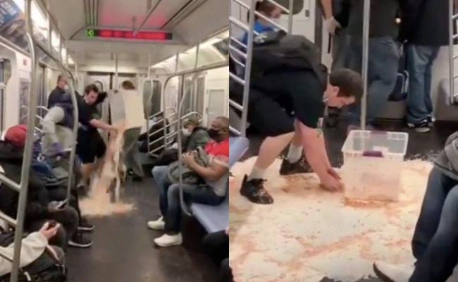 Here’s the issue with the viral prank generation: they don’t know how to read the fucking room and have zero consideration of other people. When the Jackass guys were raising late 90s hell, they were doing so to each other — they just so happen to be in the presence of other people. Sucking innocent and unwitting bystanders into your feeble attempts at virality is the definition of selfishness. We’re in the middle of a once-in-a-lifetime pandemic and these hard-working New Yorkers are still cramming on a shit-stained metal tube to traverse the underground corridors of New York City. Then here comes this living Pillsbury Doughboy thinking it’s a good idea to make their travels infinitely more difficult by… spilling gallons of Fruity Pebble-soaked milk onto a subway car? Seriously, where are this kid’s parents? I’ve got a pretty spacious apartment, he can come crash on my couch if his family no longer love him — had my son come home from a day of pranking everyday people who are simply trying to mind their own business as they transit to and from work, he’d have to start calling me “Eric” and not “Dad”.