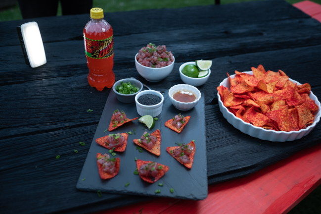From there, I headed to sample the creations he’d dreamed up. That included one of the more unconventional things I’ve ever eaten: sushi-grade tuna garnished with sesame seeds and scallion served atop Flamin’ Hot Doritos (which worked much better than it had any right to).