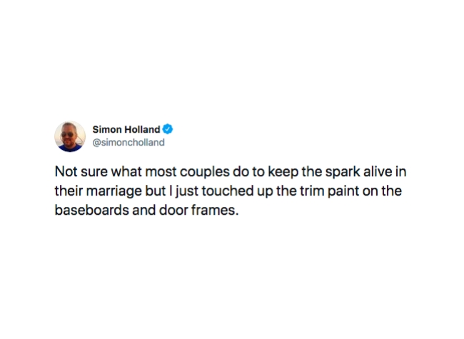 Not sure what most couples do to keep the spark alive in their marriage but I just touched up the trim paint on the baseboards and door frames.