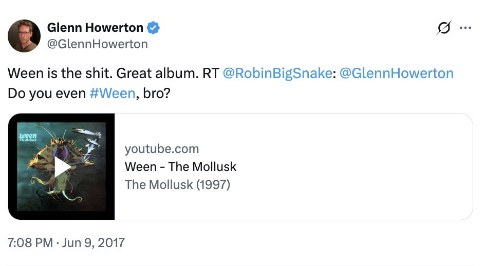 To truly understand the chaotic, “wild card” energy that has kept Sunny on the air for a record-breaking run, you have to look at Howerton’s Spotify Wrapped. It reveals a deep, abiding love for the band Ween, which he’s tweeted about in the past as well.