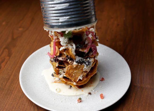 The dish in question features chips, briskets, and a wide variety of fixings crammed into a miniature garbage pail before being dumped out on the plate to transform it from a simple dish into a Dining Experience. Again, it’s not the most glamorous thing in the world, but if you’re coming off your third Tattooed Mojito, it’s everything you could possibly want.