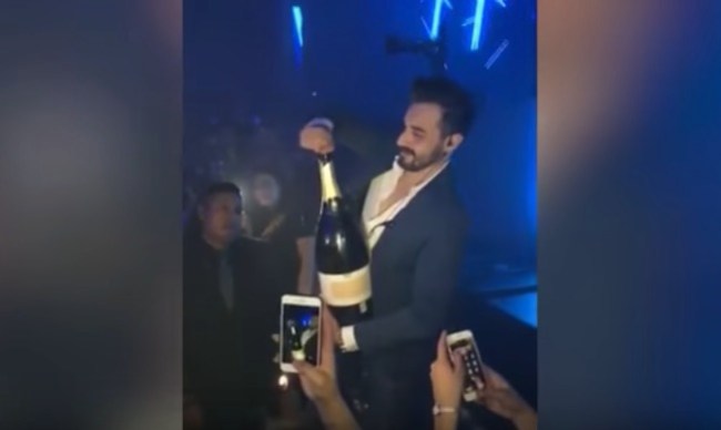 This dude, this unfortunate dude, shatters a Jeroboam of Champagne which sells for £30,000 (around $42,000+ USD) at a club in Ibiza. It all happens so fast. And if you notice the earpiece this was someone who works (worked?) at the club and not the person paying for the bottle: