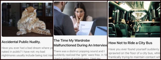 Get writing, folks. And if you have any questions about topic choice, tone, or general advice, feel free to reach out to me—the guy who shit himself—at matt@brobible.com.