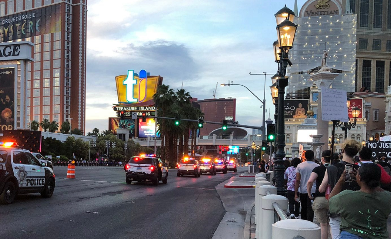 We have declared an unlawful assembly at Las Vegas Boulevard and Clark due to protestors engaging in illegal activity. A dispersal order has been issued. Failure to leave can result in arrest or citation.