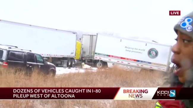 Local news station KCCI reported that the crash occurred Monday around 11 a.m. on westbound I-80 near Altoona, Iowa (a suburb of Des Moines).