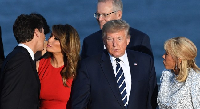 So, when a photo of Melania Trump looking like she was ready to risk it all with hunky Canadian Prime Minister Justin Trudeau at the G7 summit surfaced Sunday night, a mountain of new memes and a brand new hashtag, #MelaniaLovesTrudeau, were born.