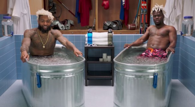 This week, Odell Beckham, Jr. is the next sports celebrity to take the plunge into Kevin Hart’s freezing cold ice tub for an interview on his web series Cold As Balls for his LOL Network.