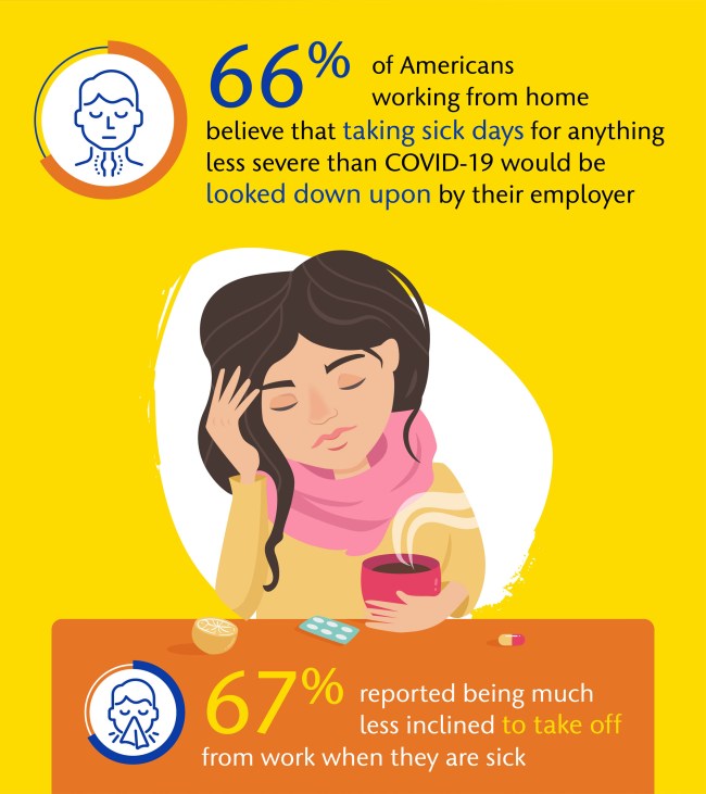 Sixty-six percent of Americans working from home believe that taking sick days for anything less severe than COVID-19 would be looked down upon by their employer, according to new research.