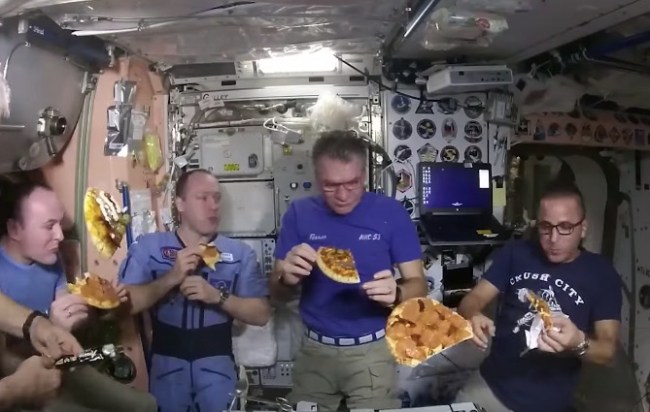 The astronauts filmed their pizza night on the space station and shared it on YouTube for the whole world to see: