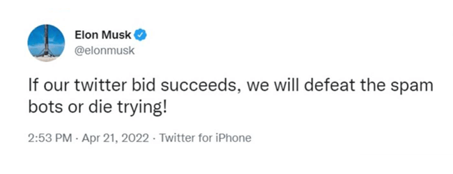 Musk says eliminating spam bots will be a “top priority” for him when he takes over Twitter.