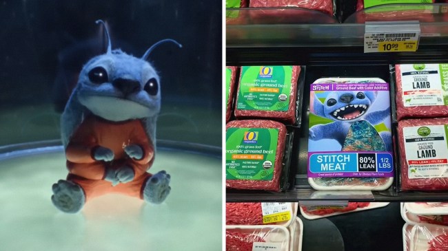 Have you ever been looking at everyone’s favorite fuzzy alien, Stitch, and thought, “What does he taste like?” In a viral TikTok, Obvious Plant (@obvious_plant) records from the ground beef section of a grocery store while holding up a pack of “Stitch Meat.” The container features a photo of Stitch from the new live-action Lilo & Stitch movie with a window on his belly so you can see his alien flesh.