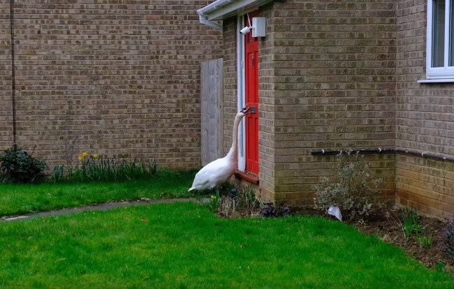 Living next door to an awful neighbor can make life a nightmare but a town in the UK is living with a different kind of rowdy resident – a swan named Cedric who won’t stop knocking on doors all day.
