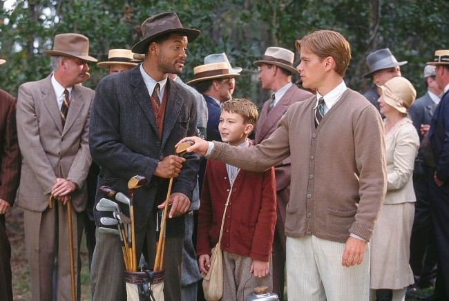 Bagger Vance (Smith) literally appears out of nowhere when Junuh is trying to find his swing. If you can get past the fact that he randomly appears in the middle of the night out of thin air, then you’ll have no issue enjoying the movie. Vance becomes Junuh’s caddie and spiritual leader throughout the film as Junuh attempts to find the pre-war version of himself again.
