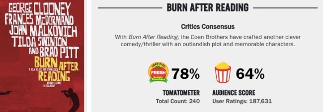 Official Synopsis: “When a disc containing memoirs of a former CIA analyst (John Malkovich) falls into the hands of Linda Litzke (Frances McDormand) and Chad Feldheimer (Brad Pitt), the two gym employees see a chance to make enough money for her to have life-changing cosmetic surgery. Predictably, events whirl out of control for the duo doofuses and those in their orbit”