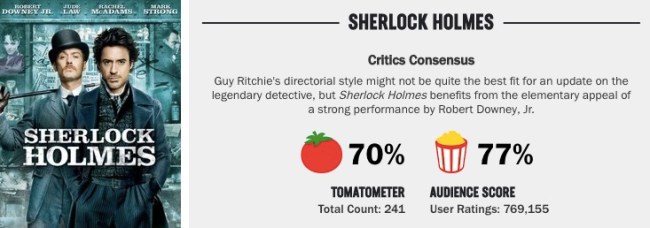 Official Synopsis: “When a string of brutal murders terrorizes London, it doesn’t take long for legendary detective Sherlock Holmes (Robert Downey Jr.) and his crime-solving partner, Dr. Watson (Jude Law), to find the killer, Lord Blackwood (Mark Strong). A devotee of the dark arts, Blackwood has a bigger scheme in mind, and his execution plays right into his plans. The game is afoot when Blackwood seems to rise from the grave, plunging Holmes and Watson into the world of the occult and strange technologies.”