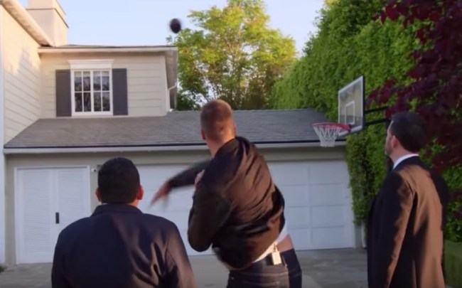 Tom Brady was a guest on Jimmy Kimmel Live last night. He opened the segment talking about how he stays in shape while getting older, crazy fans, and his desire to win (clip below) but they also hopped in a cab to show up at Matt Damon’s house to throw things through his window: