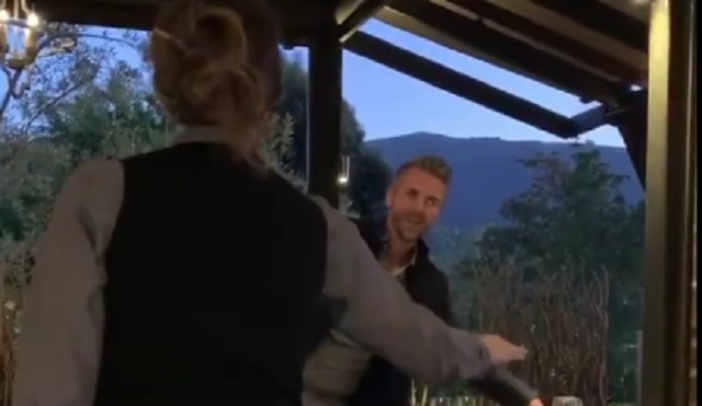 The video, originally posted on Instagram, starts with a woman asking the man sitting one table over to repeat what he had just said to them. The man then flips off the camera and says, “This is what I say.”