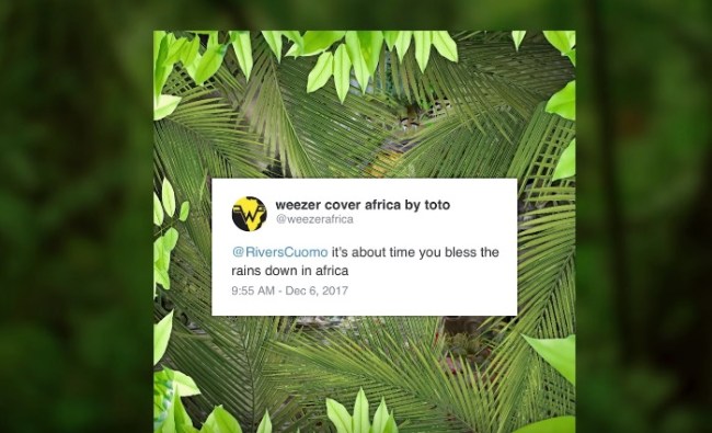 The fan account @weezerafrica isn’t sure what’s next, they just want to enjoy this moment for a while and revel in the glory of getting Weezer to cover Toto’s ‘Africa’