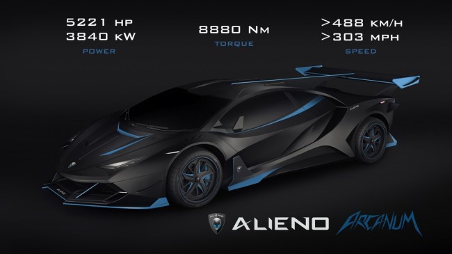 But hey, that was yesterday’s news in the hypercar world. Now a Bulgarian company called Alieno says they are building an EV hypercar called the Arcanum that will put out 5,221 horsepower and will go 303 miles per hour.