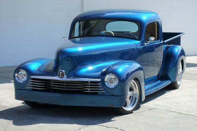 Notes: Over the top 1946 Hudson Pickup pro-built custom show truck featuring an all steel body with extensive modifications from stock. 311 miles have been put on the truck since completion of the $250,000+ build by Rob Shippy of Rob’s Rods out of Longview, WA. This truck features the best of the best everywhere; boxed and shortened IFS frame with an Art Morrison 4-link rear end and 4 corner coil-overs, 4-wheel disc brakes, 468CI big block GM motor with dual Edelbrock carbs and loads of polished billet aluminum, all paired to a 700R4 automatic transmission, fully welded and ceramic coated exhaust with Headman headers and Flowmaster mufflers, smoothed firewall, recessed headlights, one-off custom short bed with a simulated burlwood bed floor, widened rear fenders, Billet Specialties staggered 17″/18″ polished billet aluminum wheels, suicide doors with shaved handles and remote electric latches, a tan leather interior by with late model low-back bucket seats, Billet Specialties steering wheel on an Ididit tilt column, hidden gauges, Alpine stereo with 4 MB Quart speakers, power windows, Vintage Air AC, world class PPG Teal Pearl base/clear paint and much more. Every part and piece of this truck from top to bottom is show painted, polished or chrome and white glove assembled.