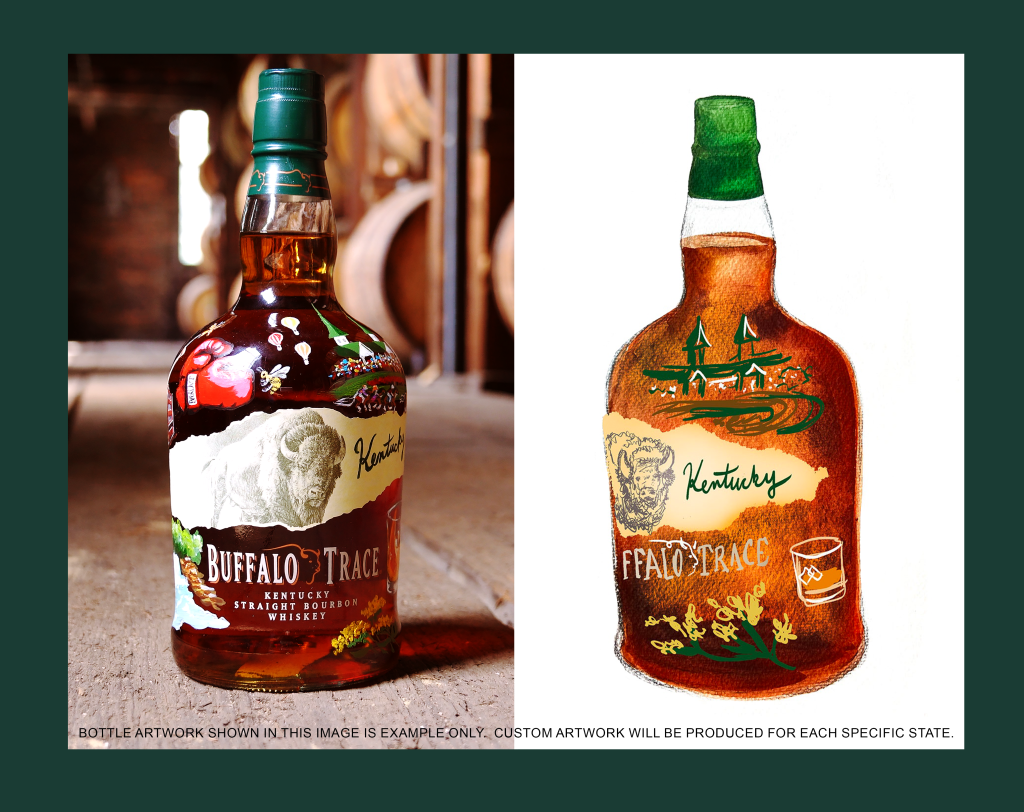 Artis Bri Bowers said “This was a particularly exciting project for me for a few reasons: first, I’m a huge bourbon fan and second, because I have really a special connection with my home state of Kentucky, which also happens to be the homeplace of Buffalo Trace, Central to much of my art is the idea of celebrating connectedness to places that are important to you, and I love that with this collection we’re doing just that while also giving back, too.”