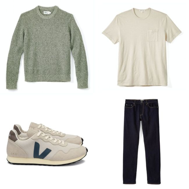 The Wellen Recycled Cotton Headlands Sweater is one of the more unique pieces of today. It’s made with a majority of recycled materials and comes in a subtle kelp green color that you can still mix and match with darker colors like brown and black.