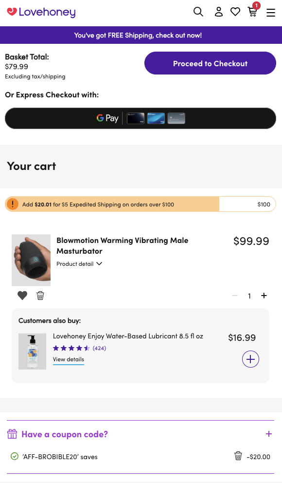 Best of all, you can get 20% off your Lovehoney order with code “AFF-BROBIBLE20” at checkout! So right now you can buy this highly-rated Lovehoney device for only $79.99 when you use our code “AFF-BROBIBLE20” at checkout via Lovehoney.com. So load up!