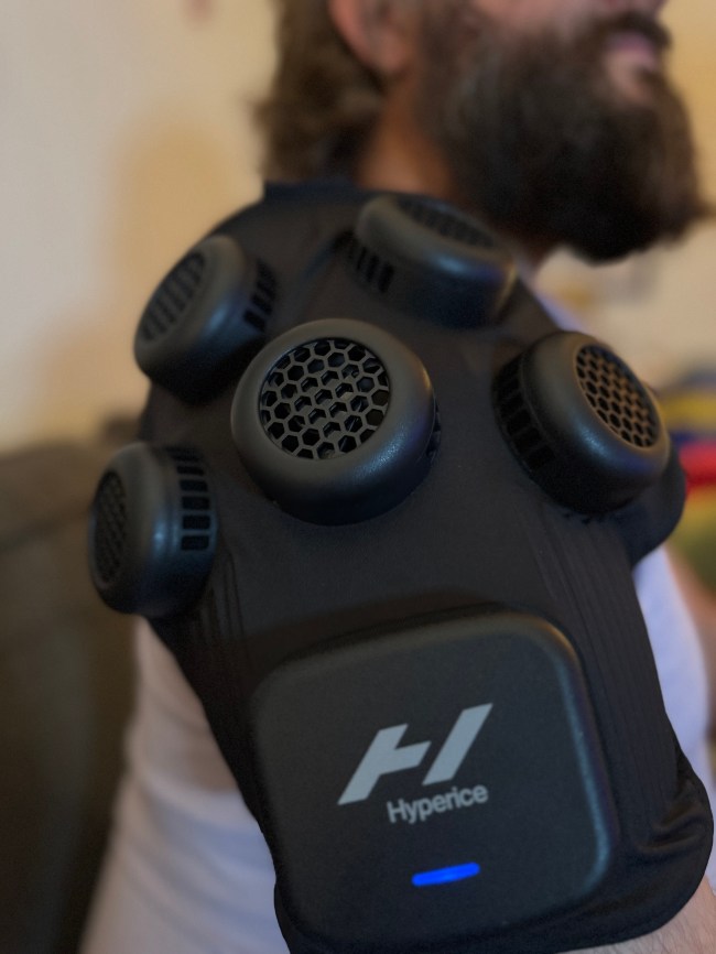 The one thing you need to know is that the Hyperice X is so much more than an old-fashioned heating pad. The technology is cutting-edge. Simply sling it over your shoulder while sitting on the couch after getting back from golf, pickle ball, the pool or the gym. Once you’re set-up on the Hyperice app, you completely control your recovery routines with 12 presets, all with adjustable times and temperatures relative to your goals. It’s super comfortable to configure. The heat soothes, targeting the usual culprits for shoulder paint.