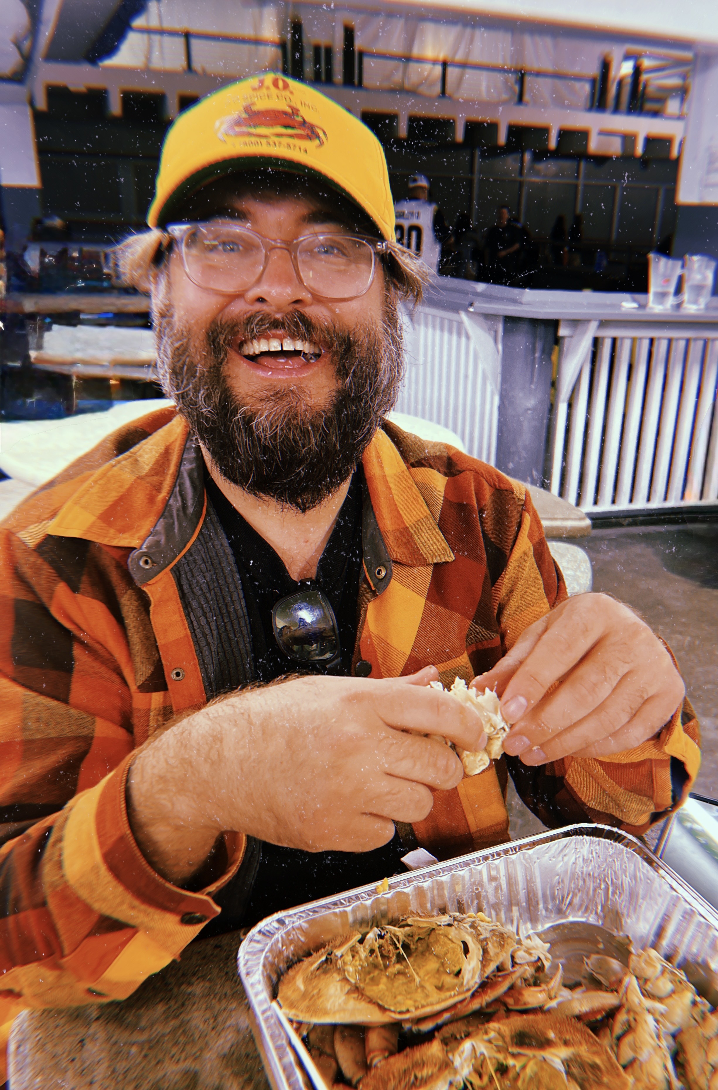And, of course, the vanity metric: the weight. Your boy likes to eat, drink, and be merry. Here I am putting down some Dungeness crabs: