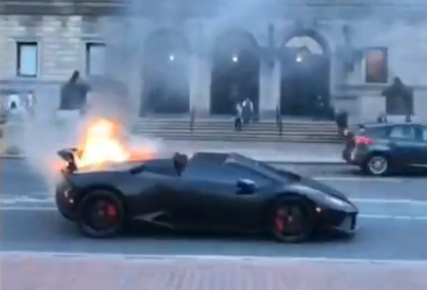The reason that the Lamborghini Huracán Spyder caught on fire have yet to be determined. Thankfully, no one was hurt from the lit Lambo except maybe the owner who can wipe his tears with $100 bills.