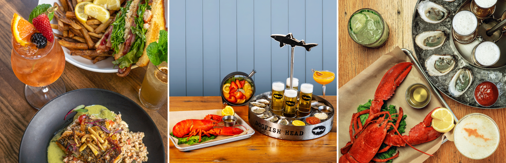 It’s the kind of off-centered creativity you expect, applied to the ocean’s bounty. As founder Sam Calagione puts it, “Inspired by my summers in Maine and our roots in the Chesapeake, we’ve crafted a menu that’s bold, fresh, and uniquely Dogfish.”