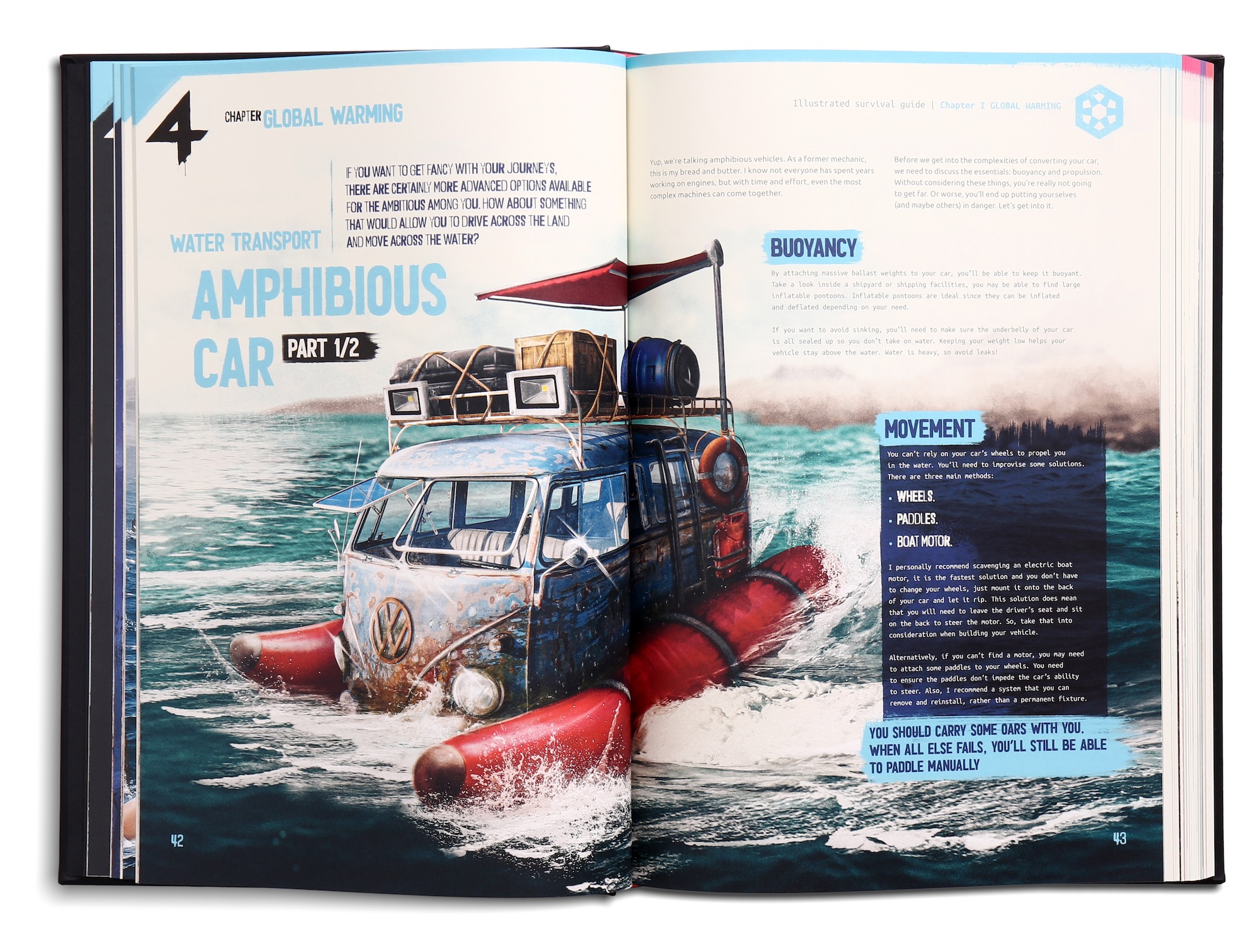 Amphibious Logistics: If the roads are choked with dead steel, take to the water. The guide details how to convert a standard vehicle into an amphibious transport using inflatable pontoons and improvised propulsion.