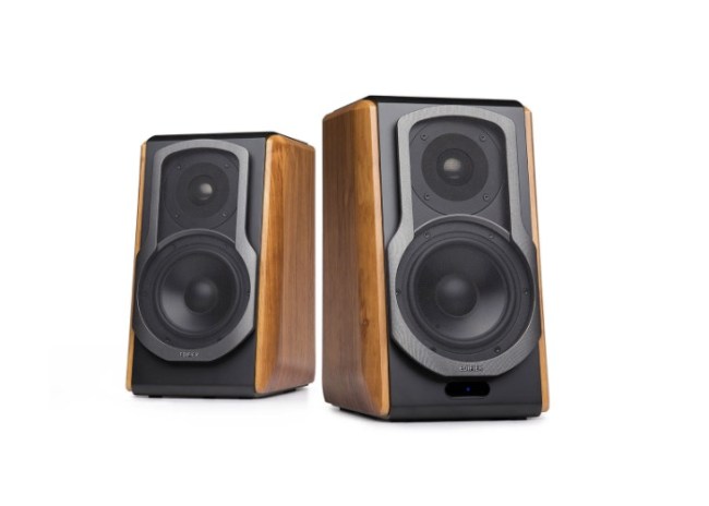 These Edifier S1000DB bookshelf speakers are not only designed to look sexy as all hell, they deliver the highest sound quality from the titanium tweeter which was chosen for its excellent dispersion and better sensitivity to the precise cut of the speaker box angled to create a large sound with a low frequency. Front facing drivers are positioned for optimum performance delivering a hefty 120 watts in a stylish yet simplistic form factor with 5.5-inch aluminum bass drivers. These speakers also feature various inputs including options for optical, coaxial, PC And AUX, and they also deliver studio-quality sound wirelessly with Bluetooth aptX.