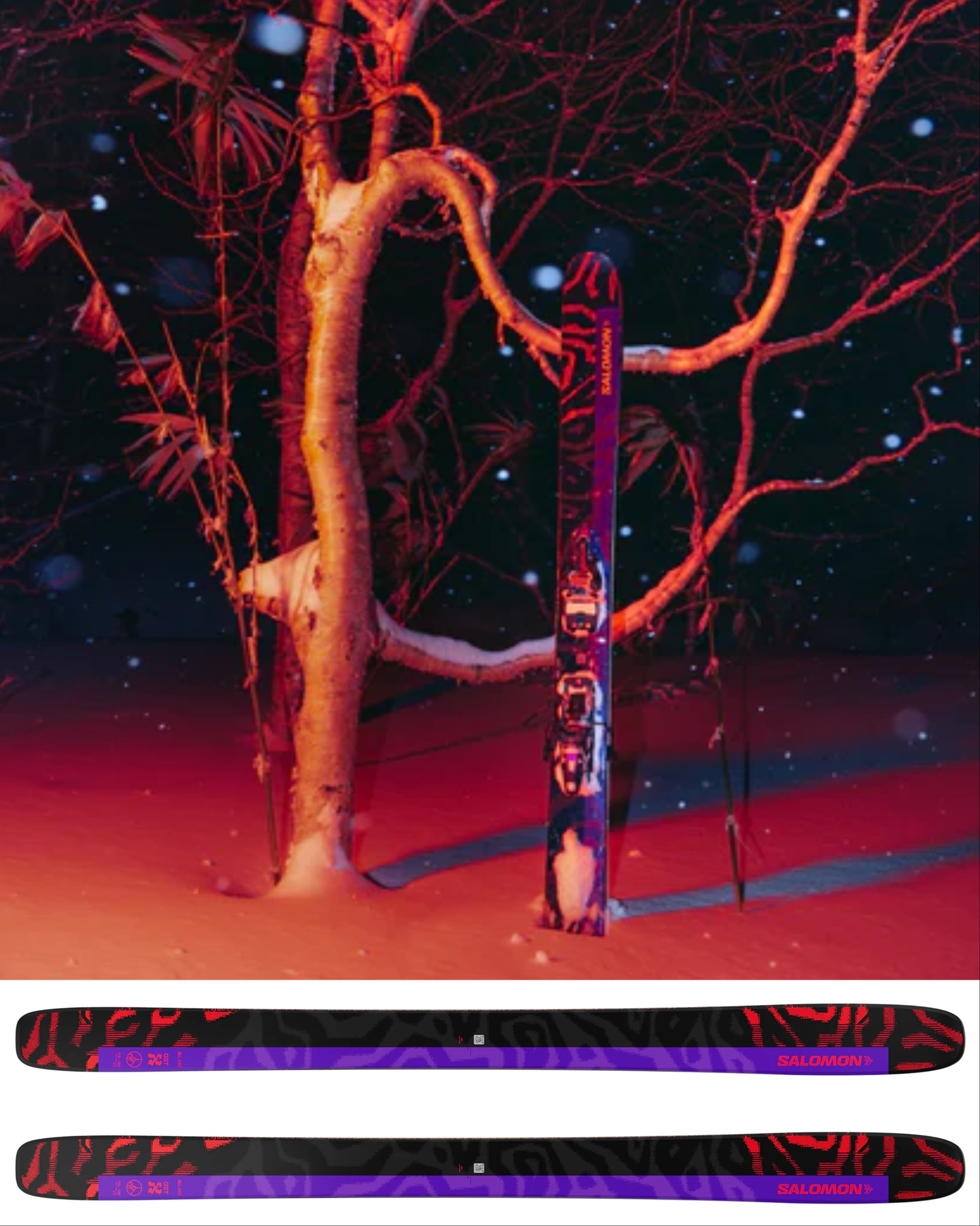 These are built specifically for big lines in deep snow. With a massive 116mm underfoot and a generous rocker profile, they are designed to surf, drift, and float through the deepest pow you can find. But they aren’t just noodles; Salomon used a Karuba and poplar woodcore reinforced with basalt fibers and a “Cork Damplifier” to keep them stable when you’re charging downhill. Priced at $849.95, they are a premium tool for advanced skiers who want to turn the mountain into their personal playground.
