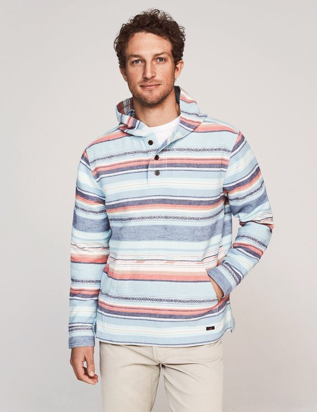 Faherty ponchos and hoodies are inspired by the surfing culture in the seventies, when surfers tripped down to Mexico to shred and bought ponchos for chilly nights on the beach. Faherty’s ponchos are a little bit of Malibu, a little bit of Montauk – all things considered, an entire vibe in of itself. The designs embrace the fun of surf culture, with each garment meticulously crafted to be comfortably lived in.