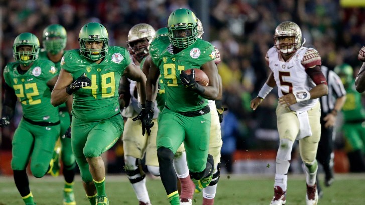 Oregon and Florida State played the first game in College Football Playoff history when they met in the Rose Bowl on New Year’s Day in 2015, and it was a pretty tight affair through the first two quarters when you consider the Ducks headed into the locker room with an 18-13 lead at halftime.