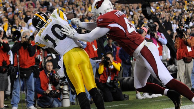 Santonio Holmes ran a route that led him to the corner of the end zone with three defenders in close proximity, but Roethlisberger was somehow able to thread the needle to connect with him as he was heading out of bounds to give the Steelers the 27-23 lead that ended up being the final score.