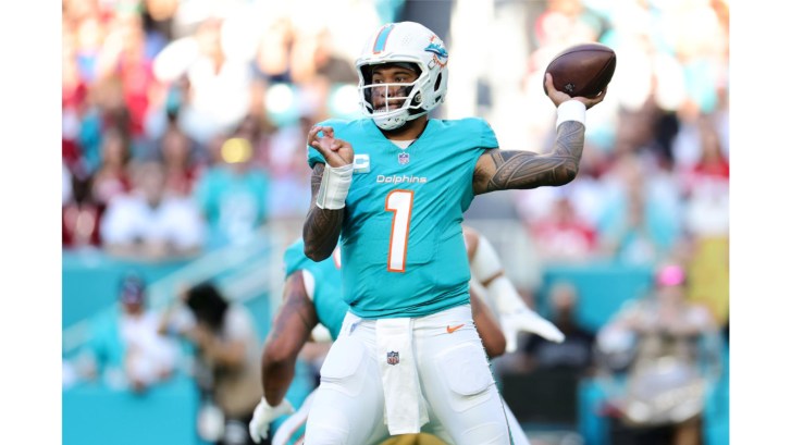 We’re betting that Tua Tagovailoa will return this weekend against the Jets after missing last week’s win over the Browns with a hip injury. His status is still up in the air as of Thursday evening. If he doesn’t play, he had another solid season. The question remains if he is durable enough to be a long-term starting quarterback in the NFl.