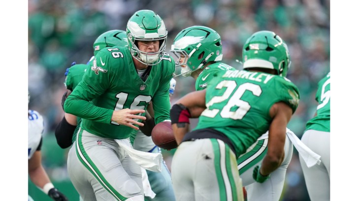 No Jalen Hurts, no problem for the Philadelphia Eagles. Saquon Barkley closed in on the single-season rushing record, both Tanner McKee and Kenny Pickett played well at quarterback, and the Eagles played a complete game to clinch the NFC East and the number-two seed in the NFC.