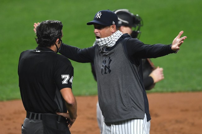Example 4,000,000 of how fun it is to hear sports without fans. Aaron Boone is MAD, but not too mad to offer a lovely compliment to the opposing pitcher before telling the ump his opinion. What a nice thing to say! It’s rare to hear such a passionate complainant just seconds before a complete indictment of the umpire’s ability to call the game.